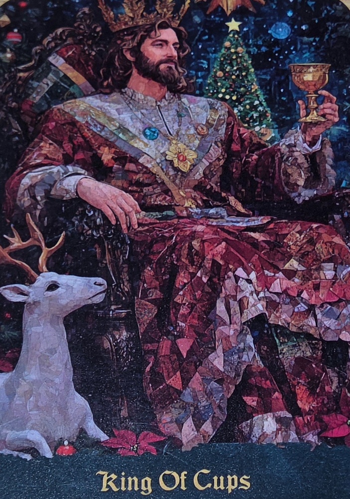 【カップのキング・正位置】心に余裕を持ち物事を懸命に対処できる時です。味方が近くにいます。リラックスして臨みましょう。